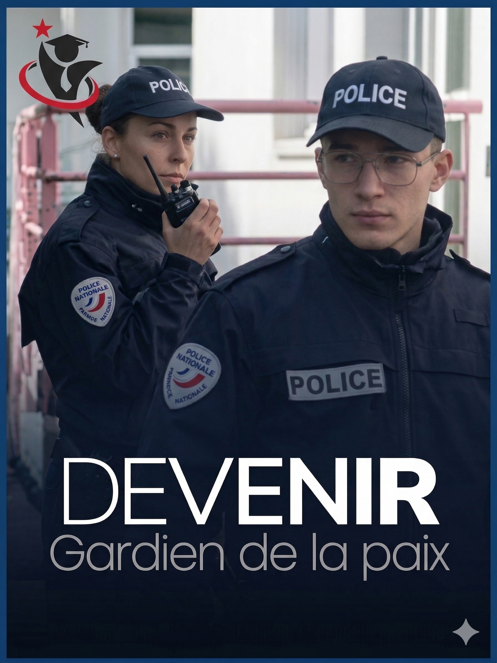 Le gardien de la paix est un fonctionnaire de la Police Nationale qui travaille au plus près du public. Il porte aide et assistance aux personnes, prévient la délinquance et intervient en première ligne. Contrairement aux idées reçues, gardien de la paix est un grade, pas un métier — il ouvre l’accès à plus d’une centaine de spécialités.